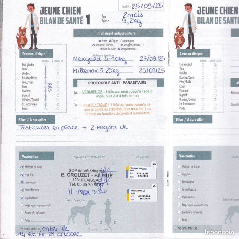 Chiots nés le 25/07/2025 disponibles à partir du 25/09/2025